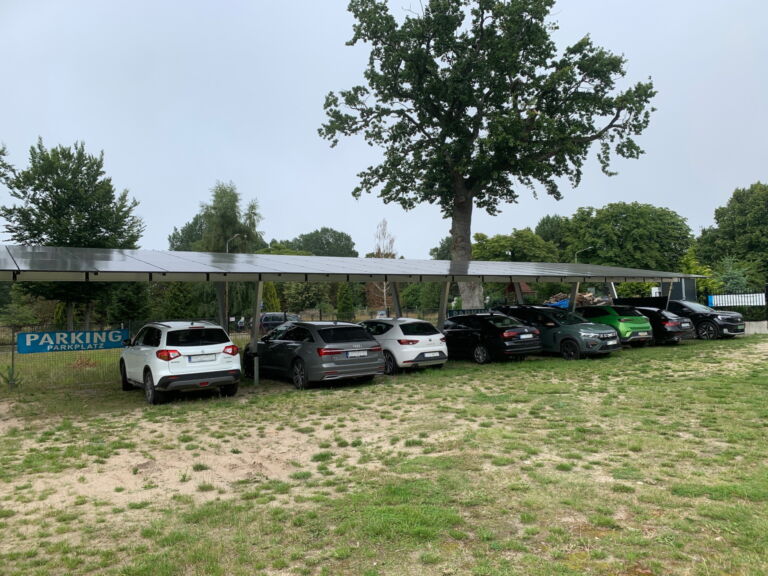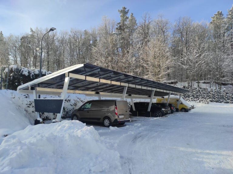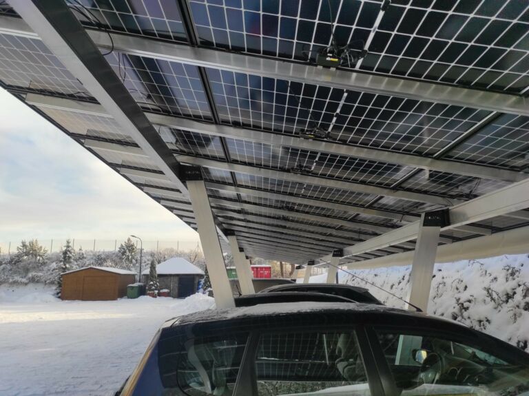 Głównymi zaletami carportów fotowoltaicznych jest wykorzystanie miejsc parkingowych do montażu instalacja fotowoltaicznej oraz zadaszenie dla parkowanych aut.