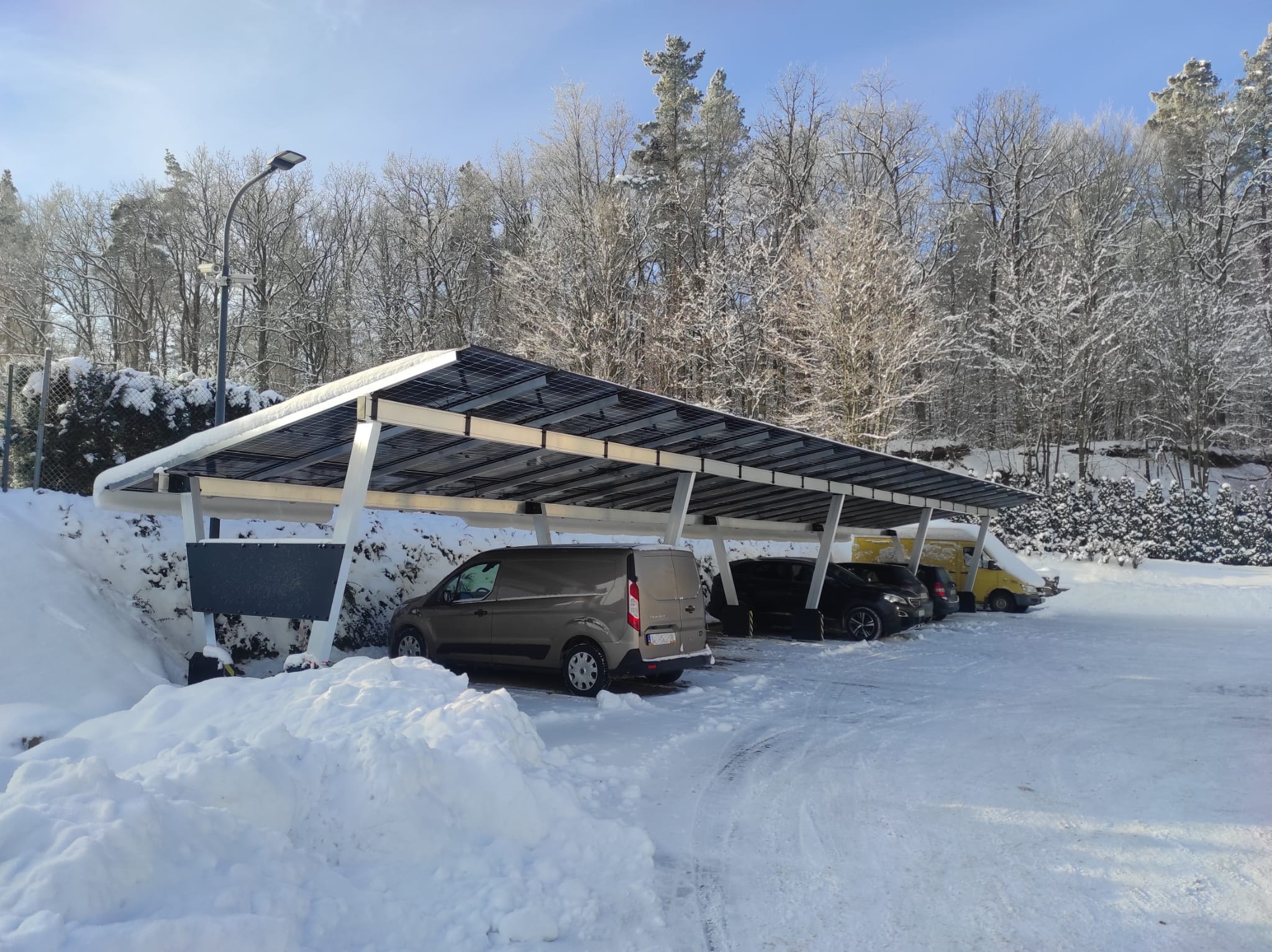 Carport fotowoltaiczny, inaczej wiata parkingowa z modułami słonecznymi to konstrukcja stalowa lub aluminiowa pokryta modułami fotowoltaicznymi.